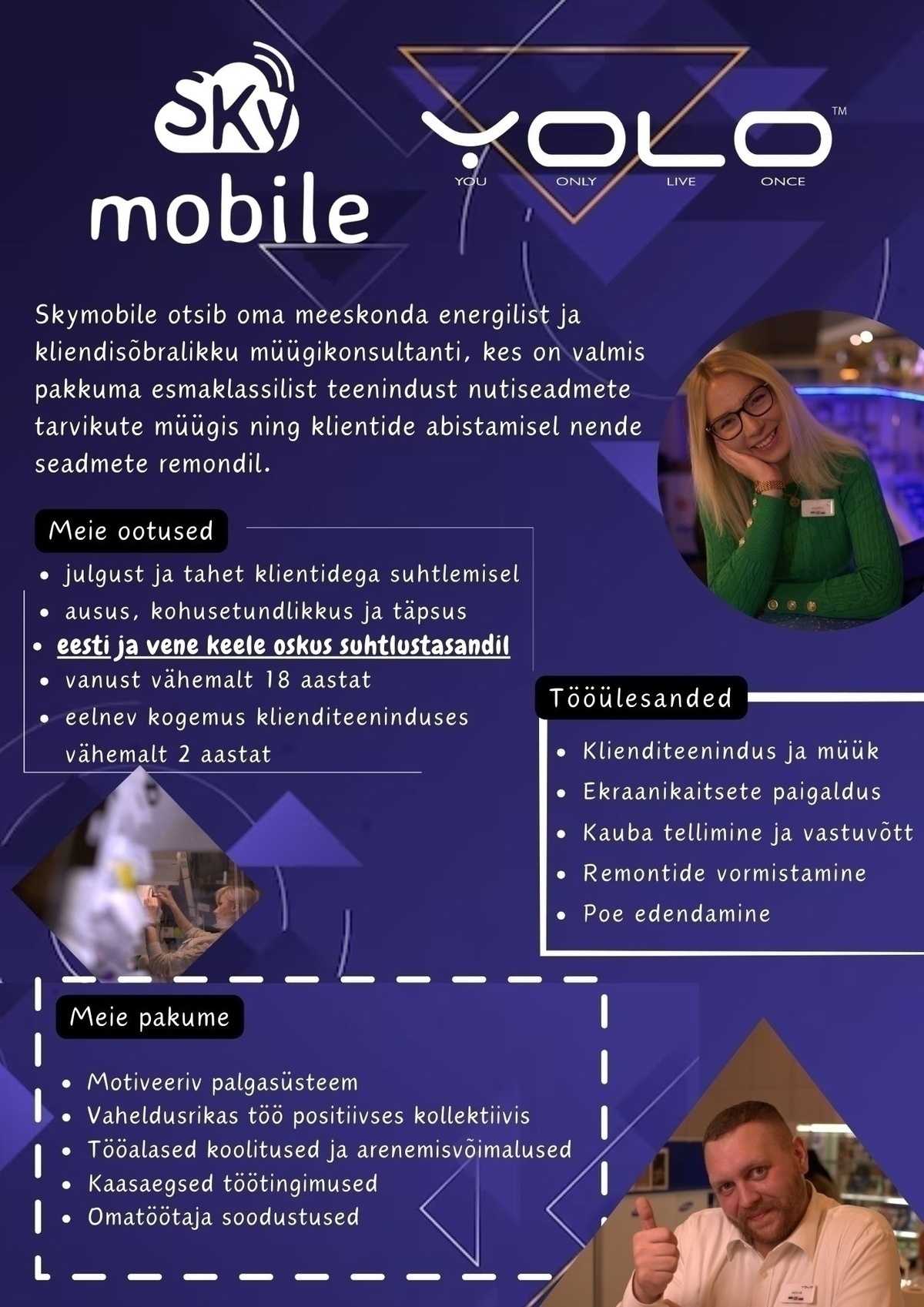 - Positiivne suhtumine ning rõõmsameelne teenindamine müügisaalis
